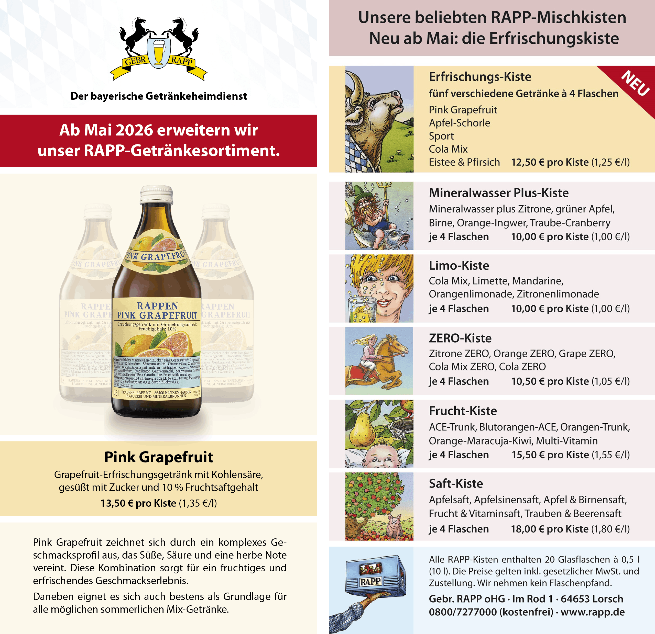 Wir beliefern Sie zuverlässig mit RAPP-Getränken und nehmen Ihnen die lästige und beschwerliche Arbeit der Getränkebesorgung ab.