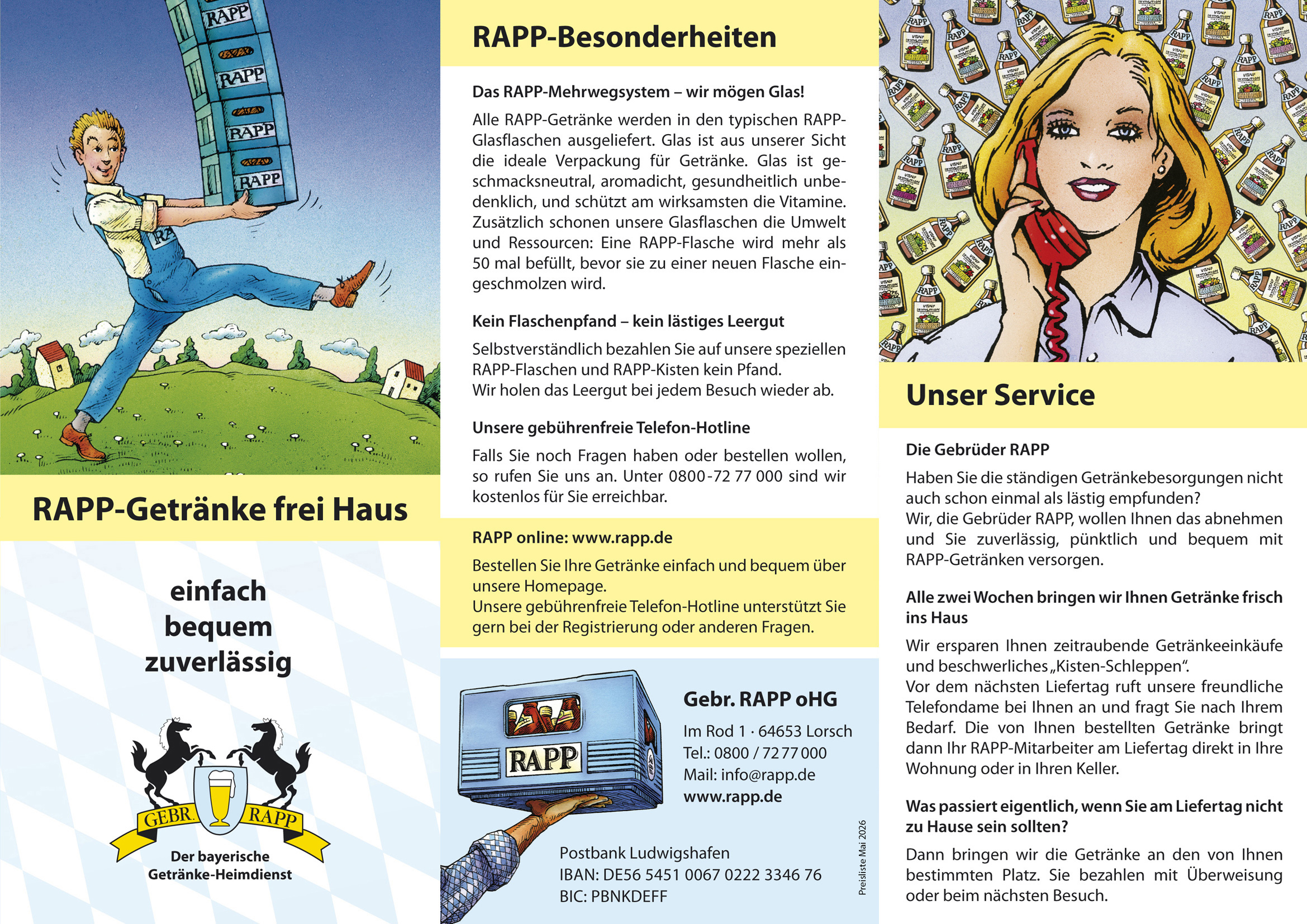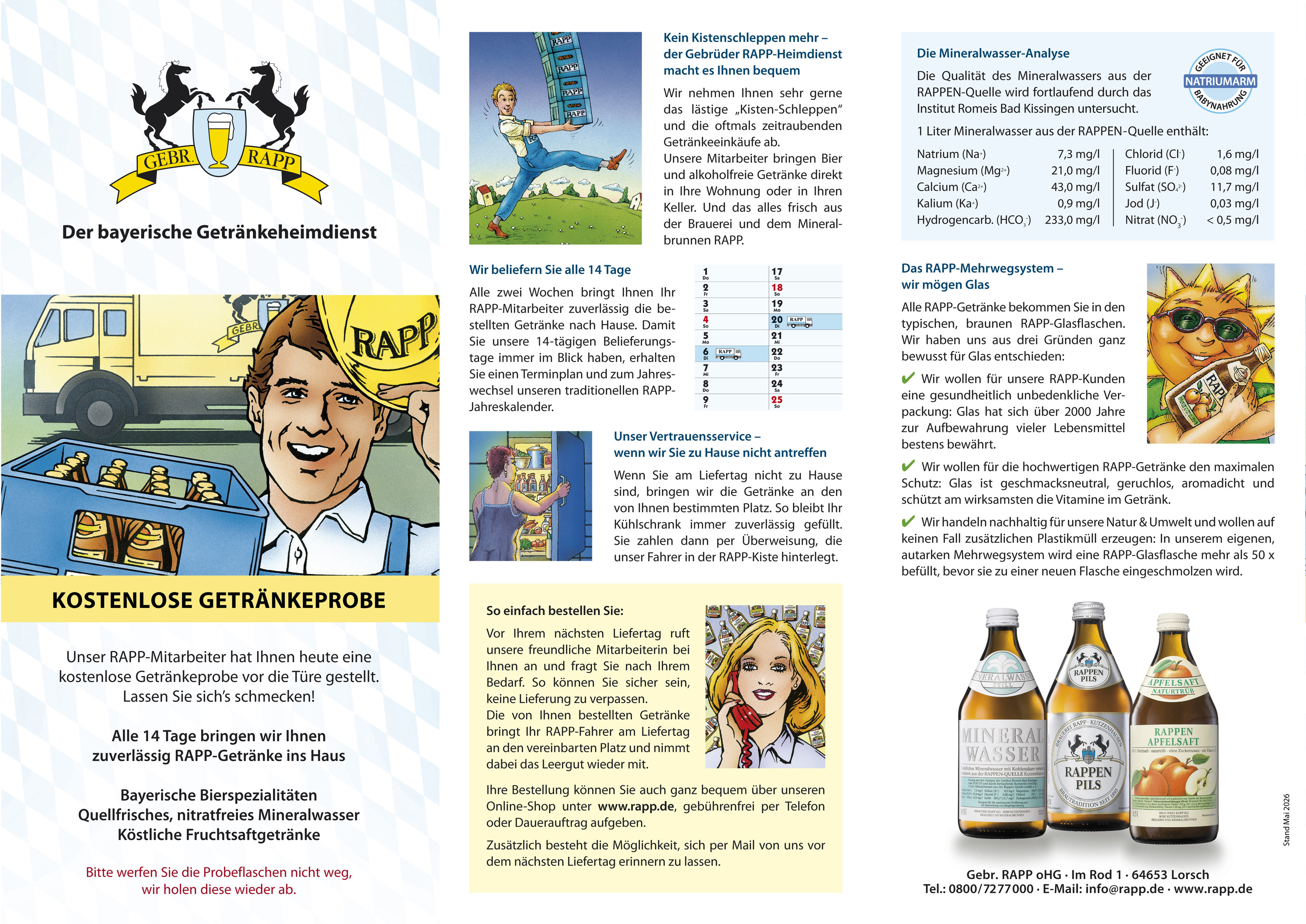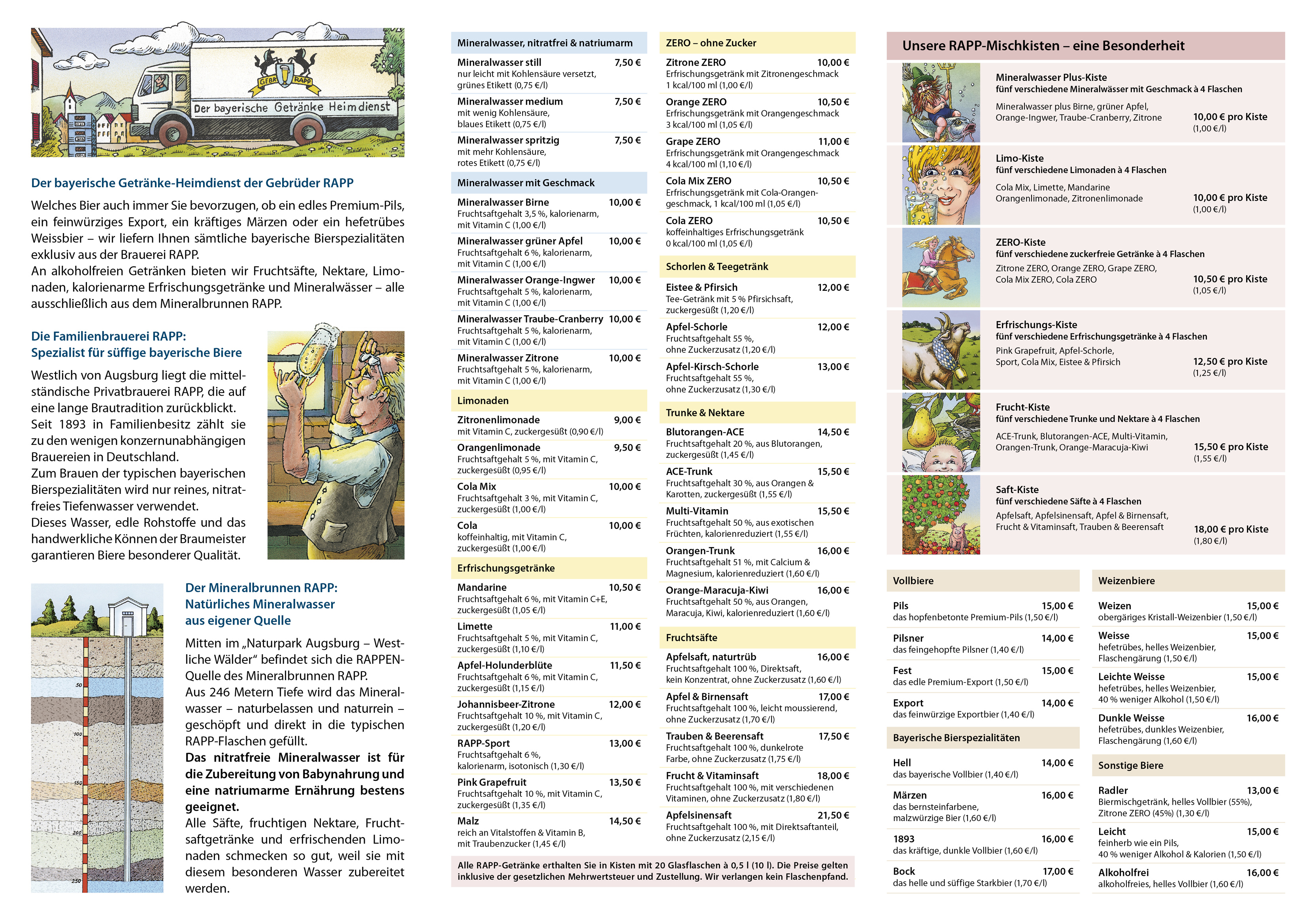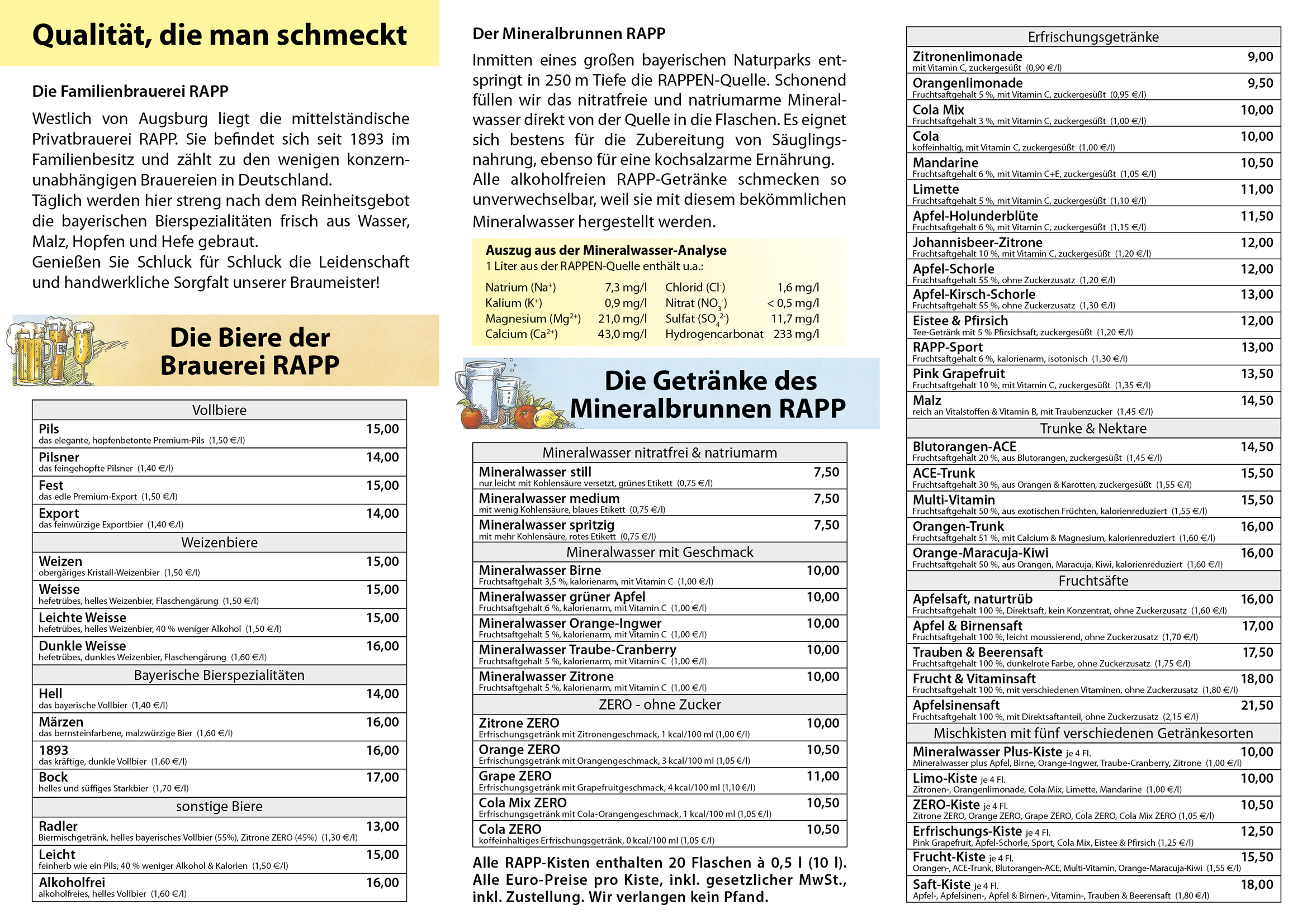 Alle unsere Kunden hatten den bisherigen Vorstellungsprospekt schon einmal in der Hand, als die beiden RAPP-Getränkeproben vor der Tür standen. Mit der Zeit ist er ein bisschen in die Jahre gekommen, deshalb haben wir ihm einen neuen Anstrich verliehen - natürlich im gewohnten RAPP-Erscheinungsbild. Alle vorherigen Versionen und Preislisten verlieren Ihre Gültigkeit.
